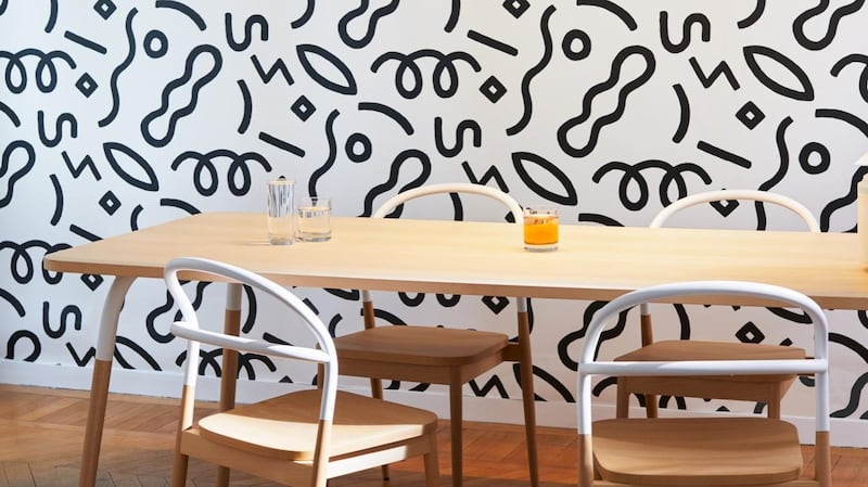 There is a Mediterranean suspension light, £1,465, by Noé Duchaufour-Lawrance that is inspired by the weightlessness of laundry drying in the Mediterranean sun; and, pictured, the Dojo table, £1,865, and chairs, £378 each, by Amandine Chhor and Aissa Logerot and Jetlag wallpaper by illustrator Lisa Laubreaux, £207 per roll. All are available from Clippings.com which ships worldwide.