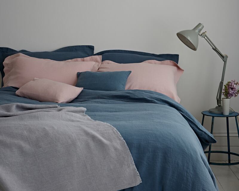 Change the mood at home with lighter touch linen. Made from French and Belgian flax this washed and hand loomed bedding from London-based The Linen Works (00 44 203 744 1020 thelinenworks.com) comes in gorgeous soft fashion tones including Parisian blue and cassis pink, pictured. A flat double sheet, costs about €161, duvet cover about €175 and Oxford pillowcases, €37.50 and €63, ex delivery.
