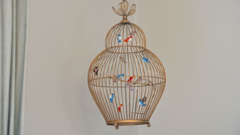 I love the high ceilings, the cornicing and the fireplaces, the staircase, all the original features. Not so much the original oak floors which we restored as I have ruined too many precious heels on them. With these old houses, it's constant, there is always something. You have to be really into it and passionate about it, which we are, we don't mind the upkeep. I love the gilded birdcage, it was designed and made for me by Paola Creations, an Italian artist based in France who works with Murano glass. I knew I need to put something in that corner that was quirky and fun.