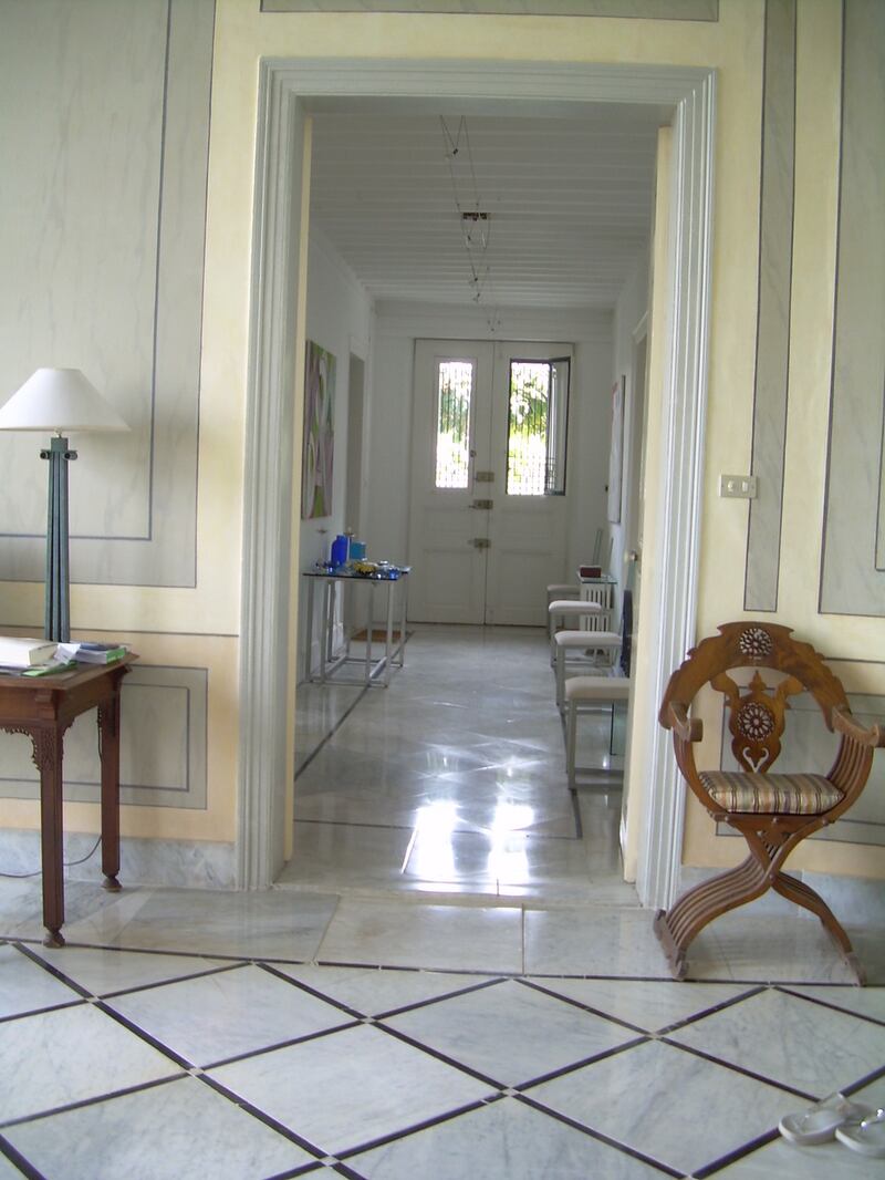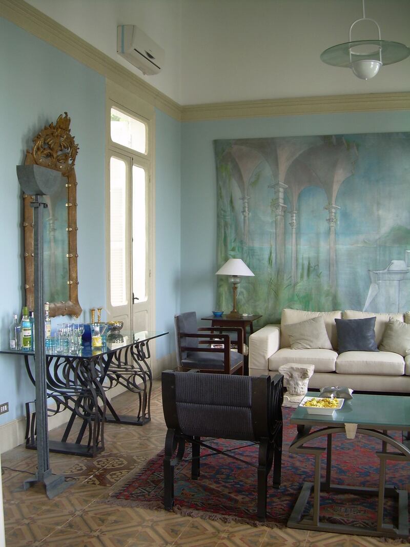 Located in the gardens of Palais Sursock, ancestral home of his mother, matriarch of the family, Alfred's house had various tenants while he pursued a successful architecture career in Ireland working, amongst other projects, on the interiors of the chapel and great hall of the Irish Museum of Modern Art in Kilmainham in Dublin with John Costello. When he returned to Beirut in 2006, he completed the restoration of the house "to a genteel, decadent Irish gentry standard" he says. Irish friends remember the high roofs, the wooden marquetry painted in strong colours, the frescoed ceilings, arcades and elegant balconies, the little hamman in the garden.