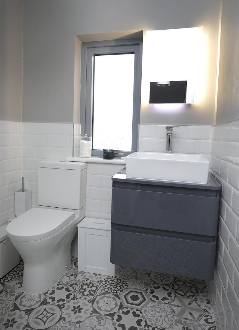 The refurb included an open-plan kitchen/dining area and the addition of 300sq ft to the downstairs of the house. Velux windows were installed to add light; new gas, plumbing and wiring was installed and upstairs the old bathroom was modernised with a rainfall shower. The boiler was also removed to add more space to the spare room.