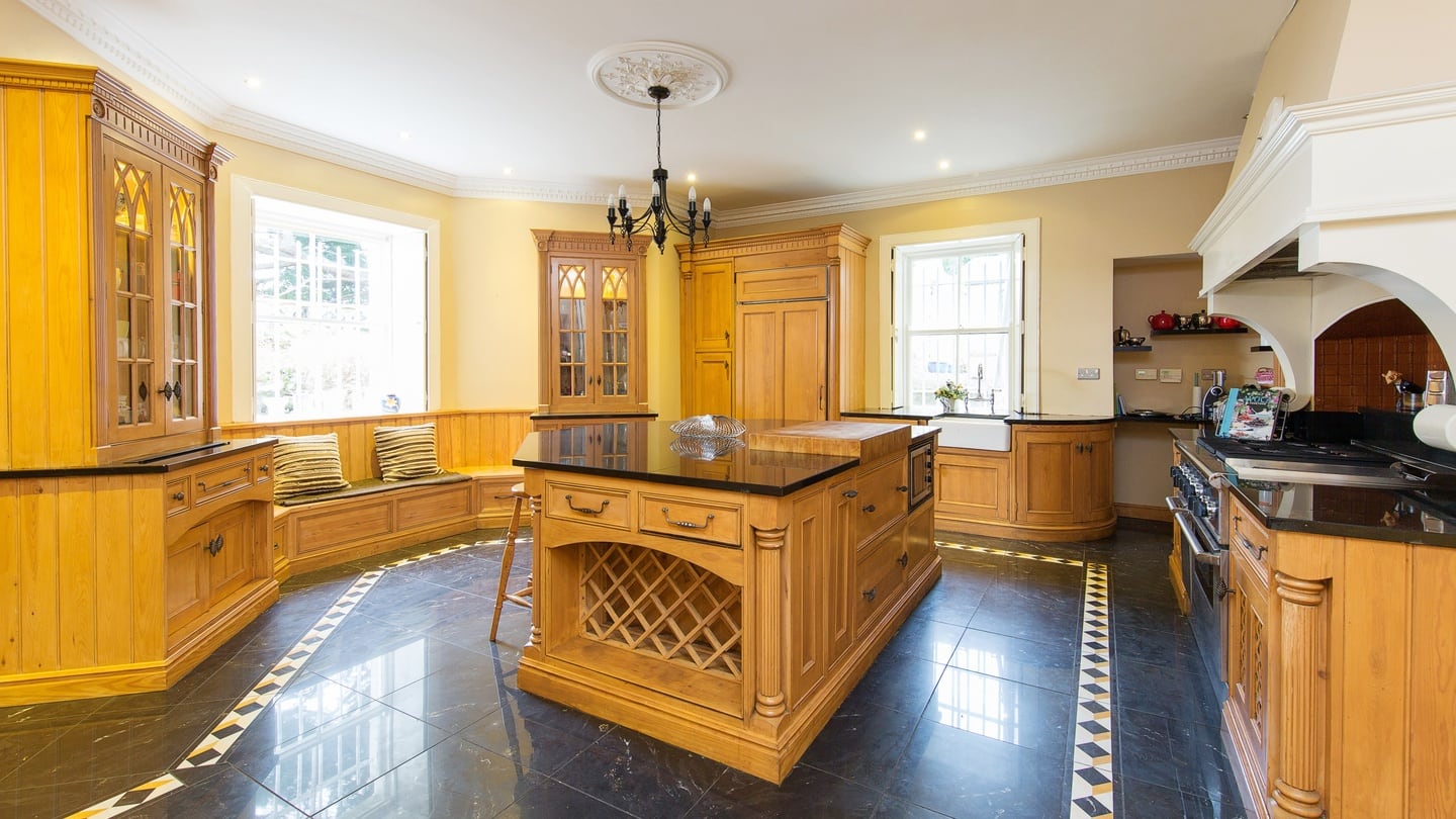 Upstairs again are five bedrooms, all a good size, the master has a lovely bay window, en suite, and a private balcony terrace. “It was a magical place for us,” says the owner, “because of the size, we had great communal areas, and our own rooms too. It was the perfect place to grow up.”