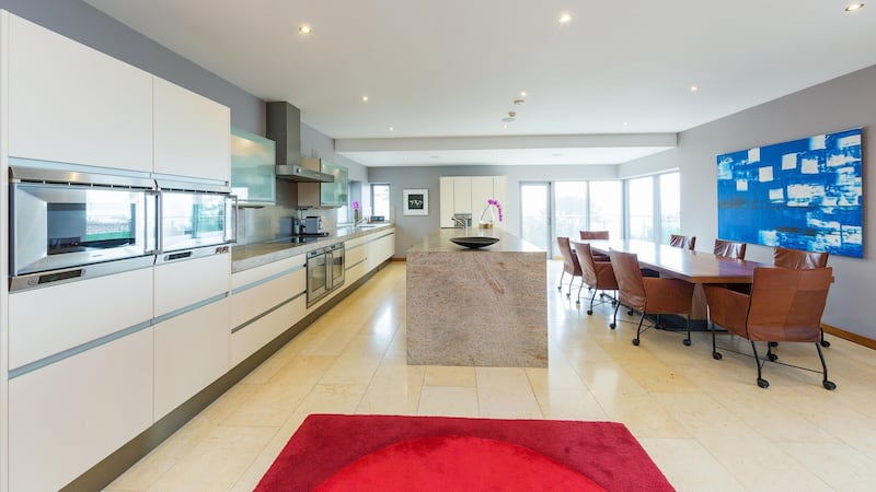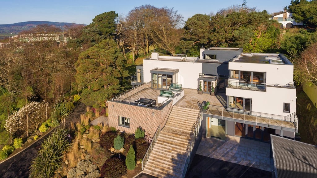 Designed by architect Mark Curran of Smith & Kennedy Architects, it is built to maximise views across the bay towards the Sugar Loaf, with floor-to-ceiling glazed windows and five outdoor terraces off reception rooms and bedrooms on all three floors.