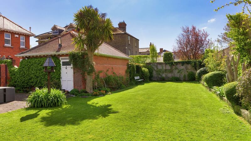 At the Sandymount Village end of Park Avenue, Glenmore is double-fronted and sits facing a sweep of gravelled driveway, large monkey puzzle tree, Magnolia and other, smaller garden shrubs. Rear and side gardens have pear, plum and apple trees inside high walls supporting loganberries. A collection of rear outhouses include a large, original garage with pit. This is where there is scope to extend or rebuild, subject to planning permission.
