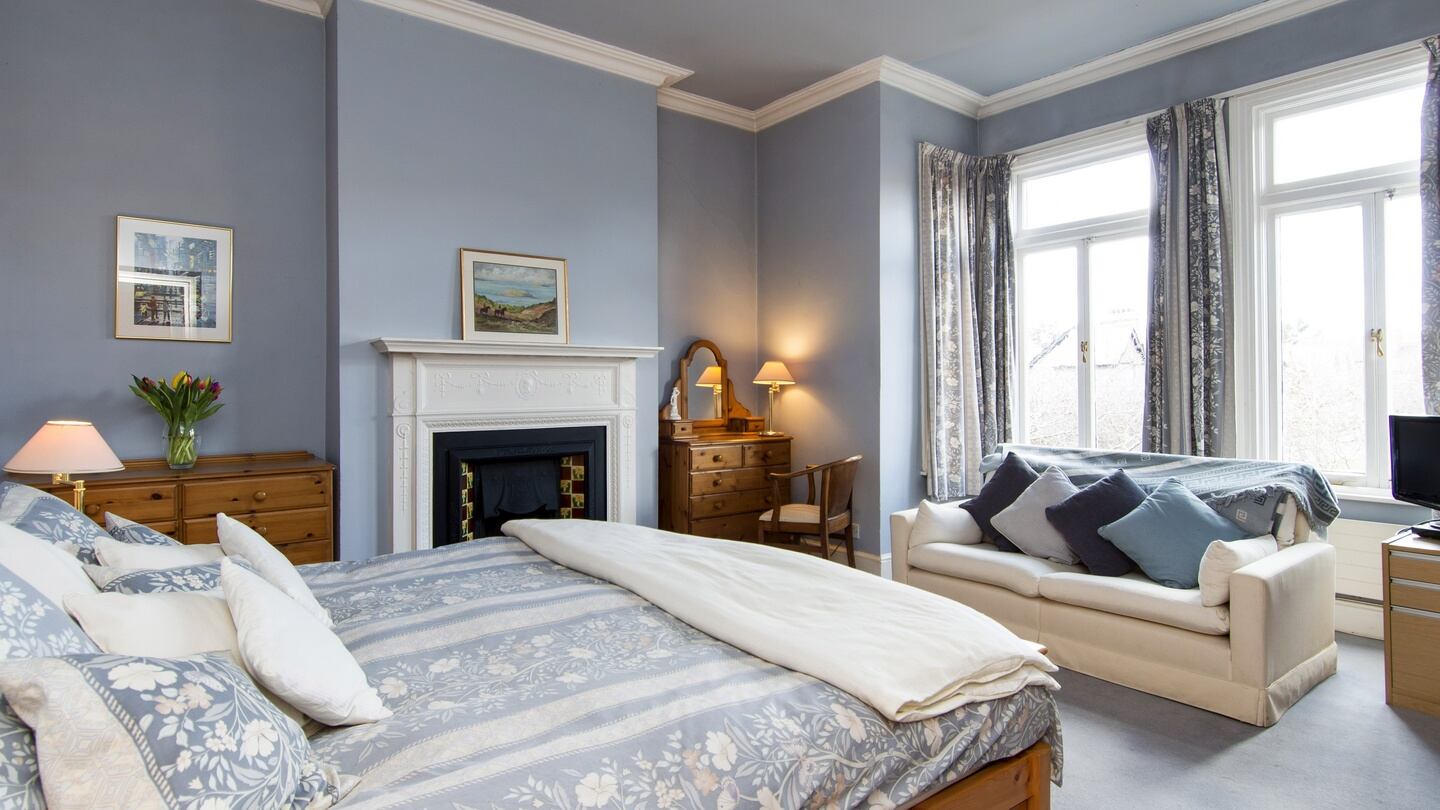 Upstairs there are four double bedrooms, the largest of which originally ran the width of the front of the house but has since been divided to incorporate a large en suite.
