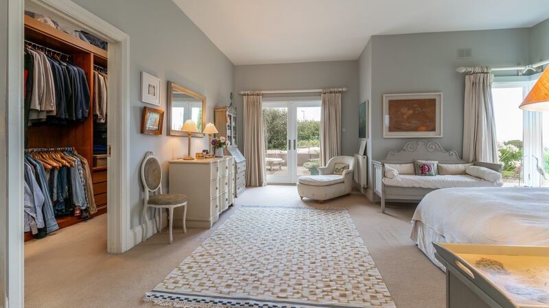 The garden was created from scratch by the owners, who wanted a mix of a jungle garden, an Asian garden and a Mediterranean garden, created for them by Greystones landscape gardener Philip Brightling. A sweep of lawn at the front of the house is bordered by olive trees; gravel paths and wide steps lead up and around the flower-filled terraces. There's a pond on the top terrace, a gazebo, a garden daybed and, of course, the higher you climb, views over the sea.