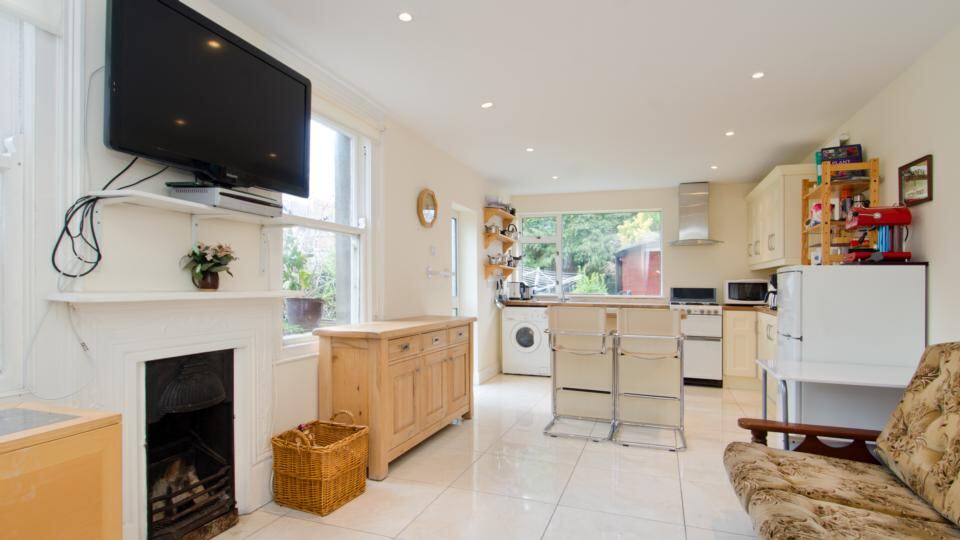 The kitchen area opens out onto the garden and while the units are modern the entire area could benefit from a rethink in terms of layout to make it more workable for the young family who will probably buy.