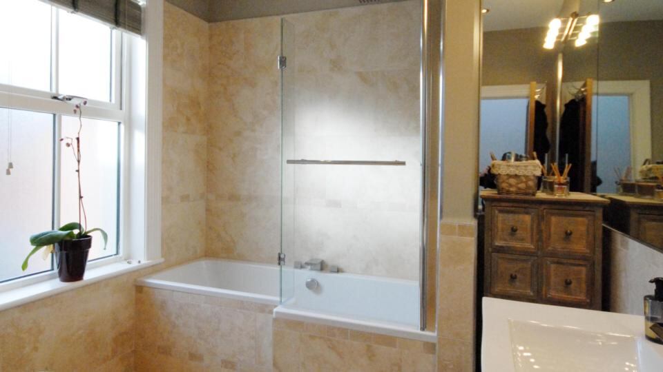 Originally a two-bedroom property, the house now has three bedrooms. The large room that spanned the width of the house has been divided and now houses the master bedroom and a large single bedroom. What was the second bedroom has become a lovely bathroom clad in Turkish travertine with a wall-hung sink and a shower bath. The third bedroom is on the return, where the bathroom had been located.
