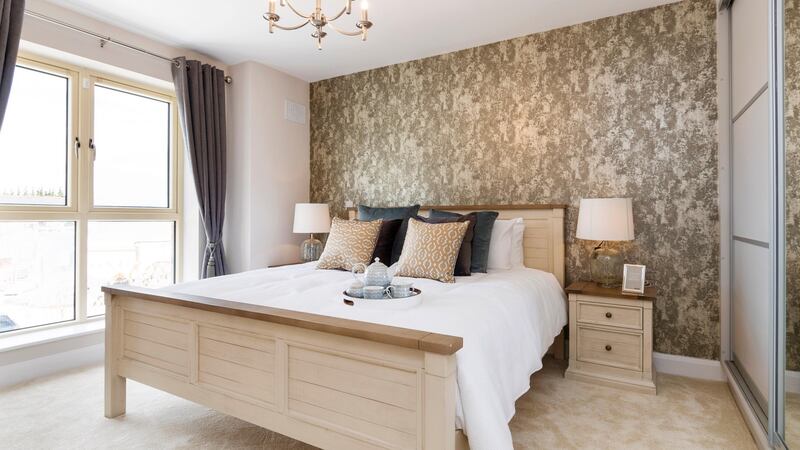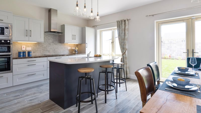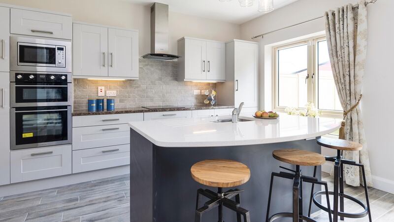 The showhouse has been designed by the firm’s in-house designer Eimear Keogh and includes Shaker-style kitchens with laminate countertops and a quartz counter on the island. Included in the price is a Nordmende appliance package, which includes a double oven, microwave, hob, extractor, dishwasher and fridge freezer.