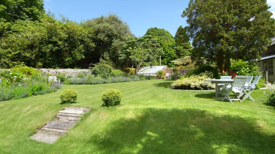 The garden, which wraps around the house, is a showstopper – lushly planted in an English cottage style and surrounded by mature trees on this very private site.