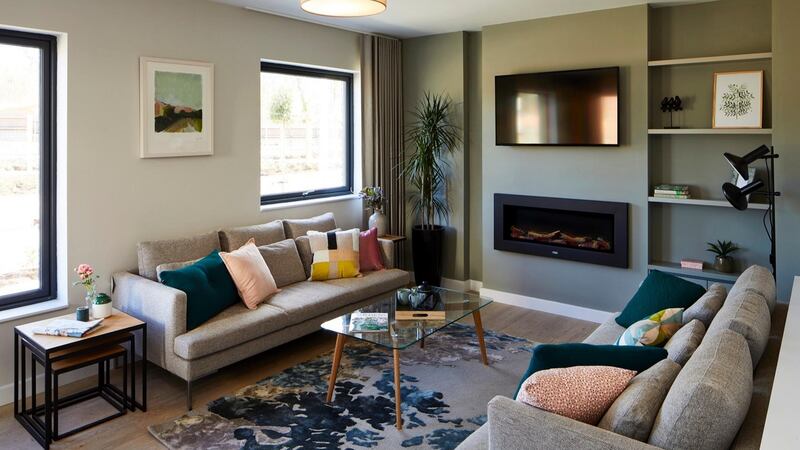 Designed by Denise O’Connor of Optimise Design there are three show units and the mid-terrace three-bed is a masterclass in maximising what you can get at entry-level prices. We’re conditioned to want to invest in a house with a south-facing rear but that’s not always possible. This unit has a north-facing back garden but the property still feels light-filled and spacious. Measuring 101sq m (1,087sq ft) it is asking from €415,000.