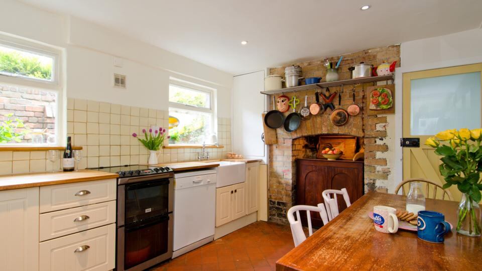 “The house had been neglected, but once we put a new roof on it and stopped the water coming in, it was fine. Because they’re such good houses, a bit of paint and imagination can transform them. We did add a bathroom, and open up the lovely fireplace in the kitchen, though. There’s always been a nice feeling in the house, a lovely vibe.”