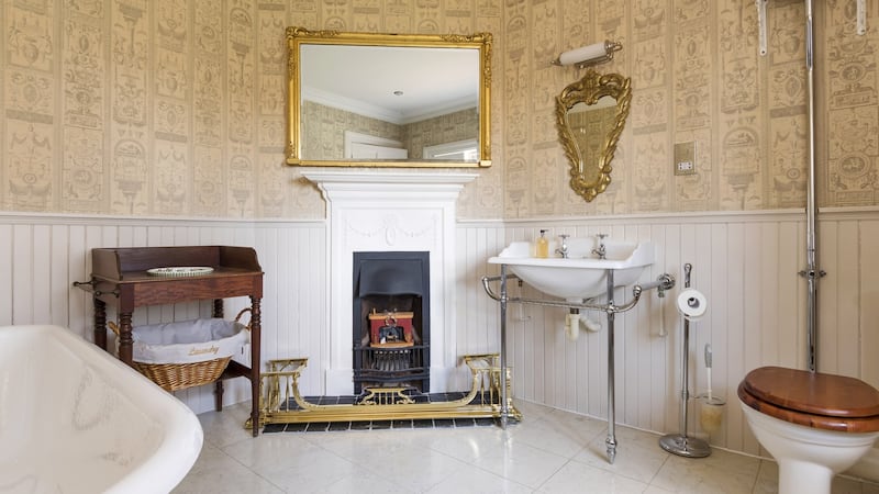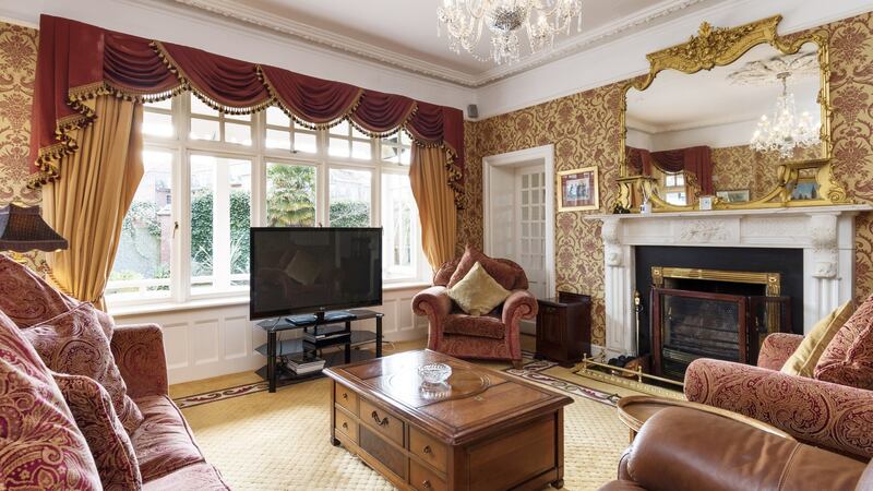 Plasterwork and ceiling roses are ornate; floors are tiled or of polished wood. Wallpapers, rich in texture and colour (some hand-painted), look as if they were hung yesterday but are, the vendor says, 20 years old. Curtains have a similar opulence. Several impressive marble fireplaces were sourced for different rooms, porthole windows feature ornate stained glass, panelled doors are original, and windows – box and bay, as well as any number of French windows – give views of wraparound gardens where tall trees are as as old as the house and where there is a south-facing pergola, lawns and ivy-clad walls.