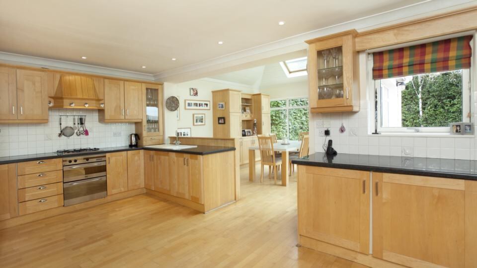 The narrow-plank maple flooring throughout the house is echoed in the maple units in the large kitchen, and new owners in search of a family home will enjoy the space in the utility, which is the same size as many kitchens in three and four-bedroom houses.