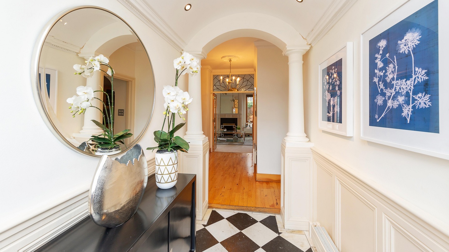 It is in the formal living room however that the space here really reveals itself. A lovely bright room with a fireplace as a focal point, it leads out to a formal dining area, and this in turn leads to the garden room – currently used as a third reception room.