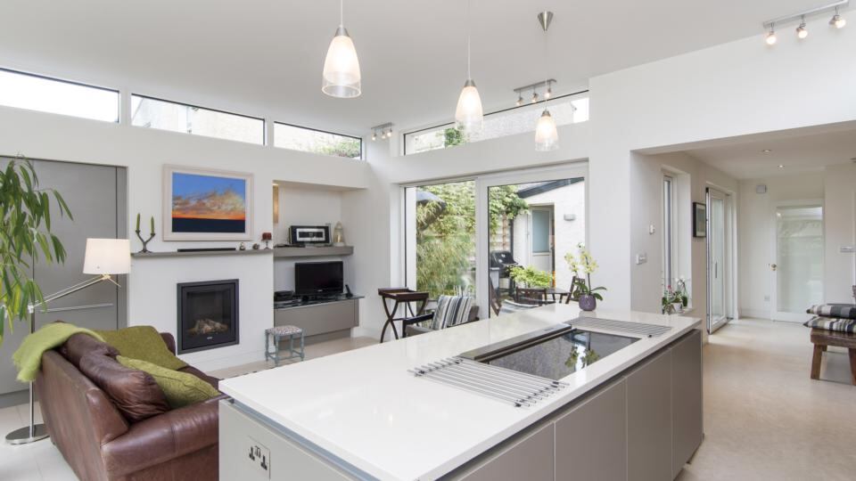 The owners bought the semi-detached house in 2001. Five years ago it was extended to create an L-shaped room to the rear that incorporates a breakfast room with doors out to a south-facing courtyard and a large kitchen/livingroom. The owners installed a smart Poggenpol kitchen with an island that includes an induction hob and pop-up extractor fan to keep the space looking as sleek as possible.