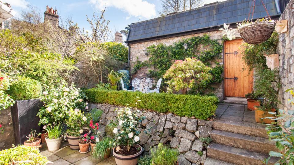 There is a small southwest-facing garden, with steps leading up to a sizeable garage with vehicular rear access. This could, subject to planning, become a great home office or au pair flat.