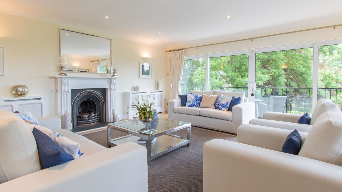 To the front electronic gates open to a long drive past tall, clipped hedges, where there’s ample room for parking.