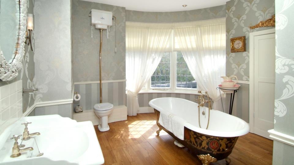 The main bedroom, once a sittingroom, has a dressingroom off it that was once a fifth bedroom. The bedrooms’s en suite, like the main family bathroom, has a clawfoot bath as well as a shower.