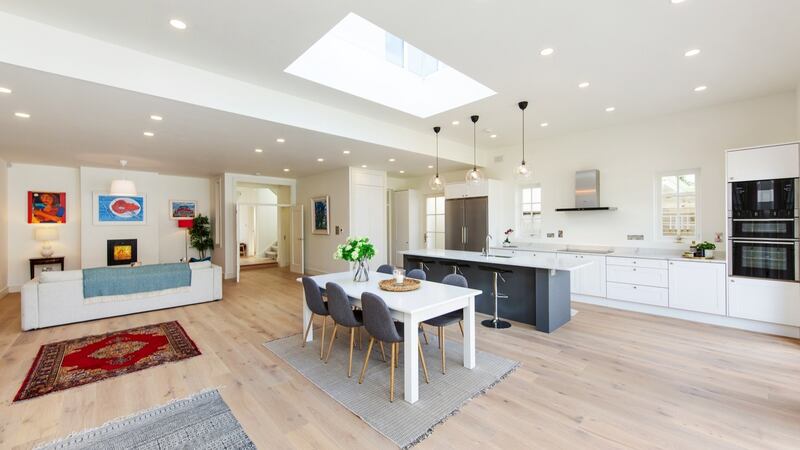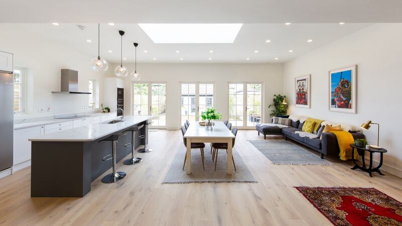 Maison, number 95 Monkstown Avenue, is one of a small number of houses set far back off the main road with a crescent of grass and trees screening some of the traffic noise. Added triple glazing to the front dials any din right down. Husband and wife boutique developer team Kevin and Kathrin Houlihan bought the property in August last year for €880,000 and added about 93sq m (1,000sq ft) so that the four-bed double-fronted property now extends to 205sq m.