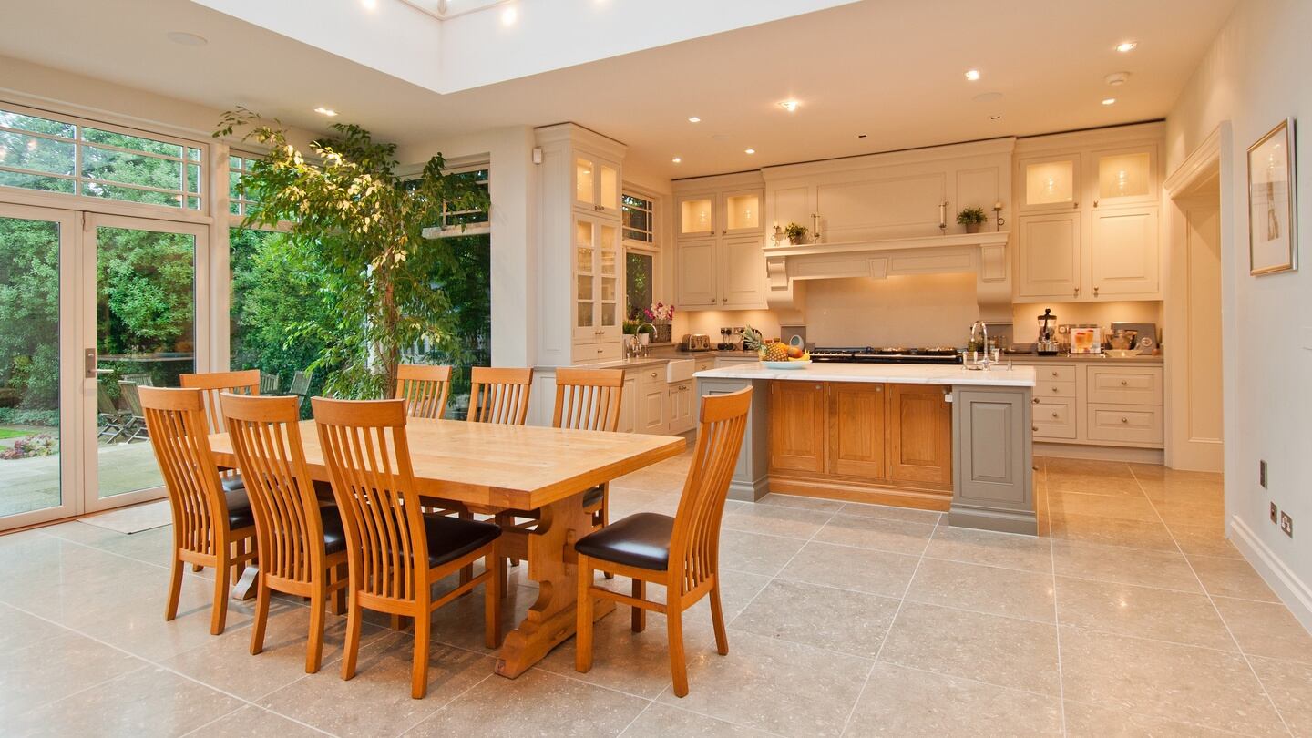 Little expense was spared on the makeover, which includes an extension with a large, bright kitchen/ breakfastroom/family room looking on to the back garden, a main bedroom with separate en suites and dressingrooms for him and her, and a serious amount of storage space in every part of the house. There are five bedrooms.