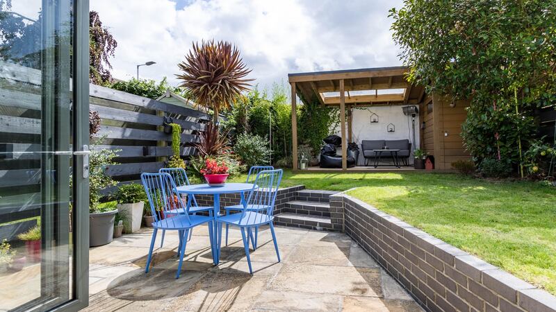 The garden has a sandstone patio, black bricks beside the raised lawn and a good-sized gazebo at the end where the couple can barbecue even if it’s raining, says Aoife.