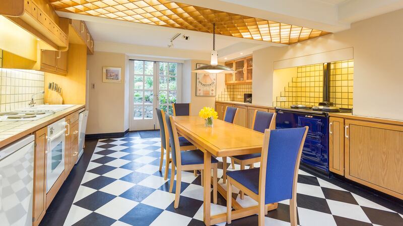At garden level is an informal living area which opens out on to the gardens, and a kitchen. The plans for the kitchen are framed and hang in the hallway, because they caused quite a stir when the room was completed 30 years ago. Designed by Prof James Horan, the former head of Dublin School of Architecture, the design was considered so avant-garde for the time it featured in many architectural publications.
