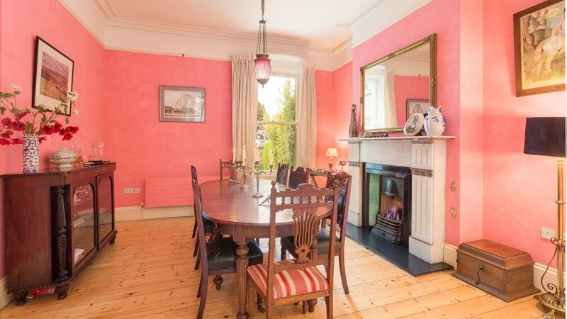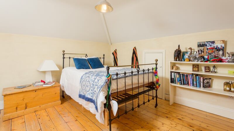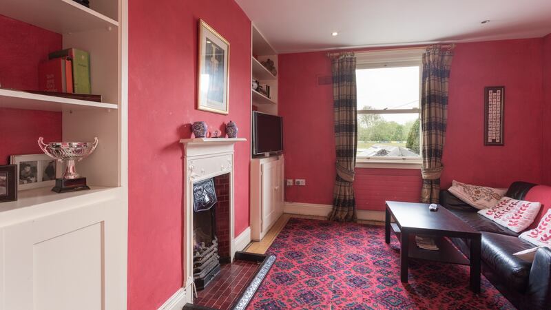 The interconnecting reception rooms feature antique white marble chimneypieces – architectural salvage sourced to replace missing ones. One of the bedrooms – on the first floor return and with a cast iron fireplace – is used as an informal living room, an appealing use of space if new owners don’t need so many bedrooms.
