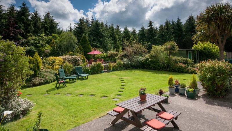 These are 1.1 acres, and laid out in lawns and patios, with mature planting, sun-trap seating areas, and the chance of getting friendly with the local deer. Inside you have approximately 214sq m (2,300sq ft) of living accommodation, renovated just over a decade ago by the owners, to upgrade the kitchen, windows and insulation – giving the house a BER of C. Apart from this it’s a summery house in mood, with timber floors and large uPVC windows, though solid fuel stoves suggest warmth and cosiness for later in the year.