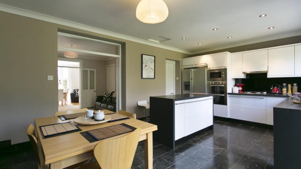 The three bedroom house, in turnkey condition, has been home to Cummins for over 20 years. During that time the attic was converted and the kitchen extended, so that the semi-detached house now has 112sq m.
