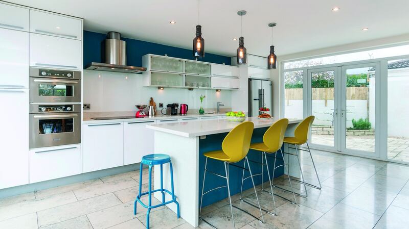 That didn’t happen – instead the rear garden was sectioned off and two houses built while the original house – a double-fronted 1950s build – was renovated and extended. The work, which extended the house at the side, to the rear and up into the attic, increased the living space to 204sq m (2,196sq ft). There are now five bedrooms, as well as bright and spacious living accommodation.