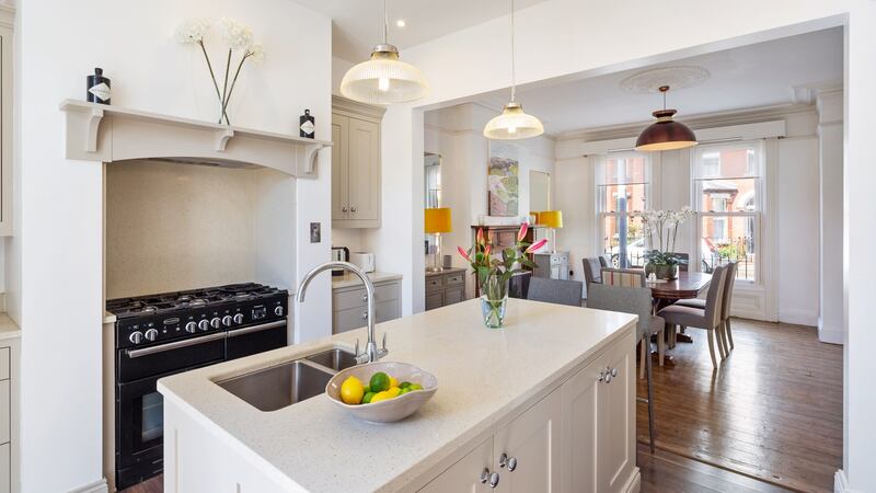 Two storeyed, the floor area covers 185sq m (1,993 sq ft) and the double-fronted layout with rooms off either side of the bright hall gives a sense of spaciousness. While considerable work was done in that 2012 makeover including a new roof and new windows, the Ber rating is a chilly D1 – something new owners will probably try to address.
