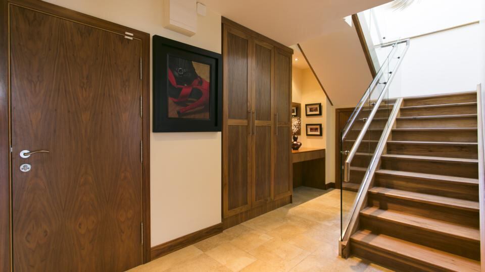 Entry to the duplex is on the fifth floor and opens into a stone tiled hall, with plenty of storage. The first of the property’s three bedrooms is at this level. It has an en suite. The very large utility next door would be better utilised as a playroom or study – all that is required is moving the condenser drier into the plant cupboard in the hall.