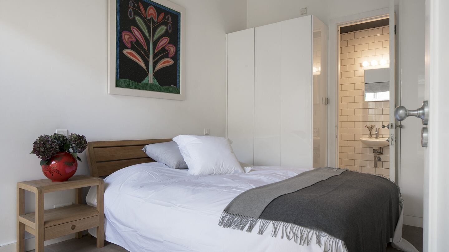 On the way to the two bedrooms, off the corridor that looks out to the internal patio, there’s the family bathroom and a small room with just a roof light – it was originally used as a home office.