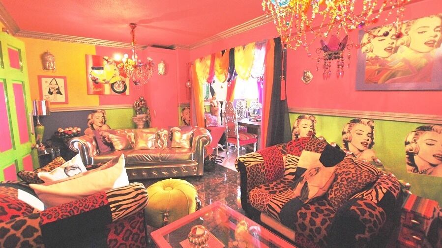 The estate agent bumph gamely describes the decor as “quirky throughout”, but that doesn’t begin to do the house justice – these interiors really have to be seen to be believed. Every inch of space features images of the Hollywood star set against a backdrop of Dayglo-coloured walls and shiny metallic furnishings, complete with Marilyn duvet covers on all the beds.