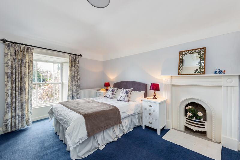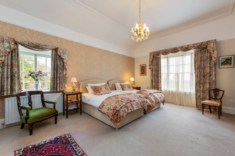 Upstairs are three double bedrooms, two of them above the sitting room. The large main bedroom is dual aspect and has a separate dressing room and en suite. There’s a family bathroom and a toilet off the upstairs hall.