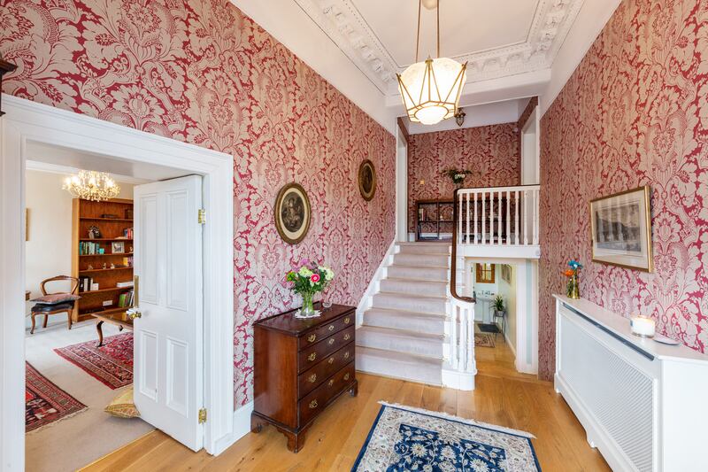 They’ve maintained its rich period details – centre roses, elaborate cornicing in some reception rooms and in the front hall, original shutters on some windows. They’ve also added some too, like the handsome Bossi-style fireplace in the living room as well as upgrading the central heating and rewiring and replumbing the house.