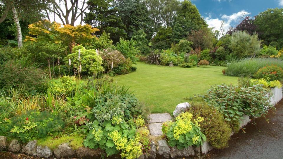 The gardens need a special mention and the heavily-stocked tool shed and greenhouse are indications of the labour of love that has created the splendid landscapes – filled with mature shrubs and trees interspersed between winding paths.
