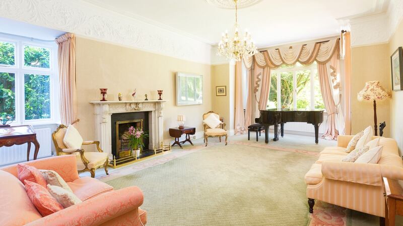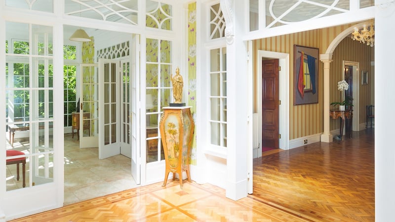 It's a striking introduction to the house and no surprise that the interior of The Bawn, Kerrymount Avenue, Foxrock, Dublin 18, is listed. Other period features in this Crampton-built house include elaborate plasterwork, original mahogany fireplaces and panelled mahogany doors. The 510sq m (5,490sq ft) seven-bed house is for sale for €6 million through Sherry FitzGerald.