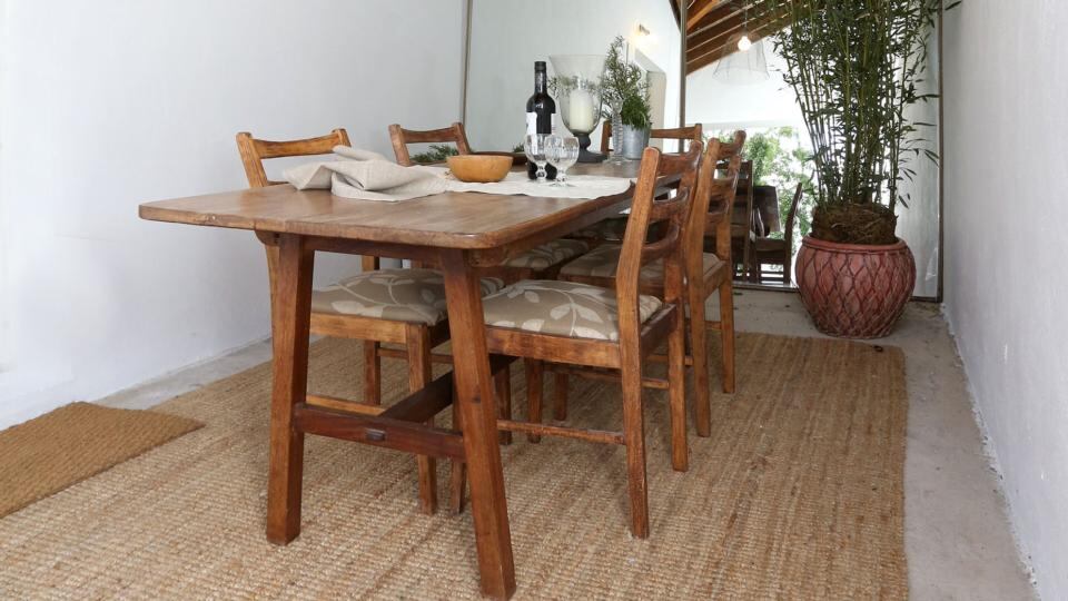 The first is the garage. Accessed through a door from the house, this has a 15ft pitched and beamed ceiling, white-painted walls, 13sq m (140sq ft) of space and, helped by a mirror filling an end wall, an air of banquets and other days about it.