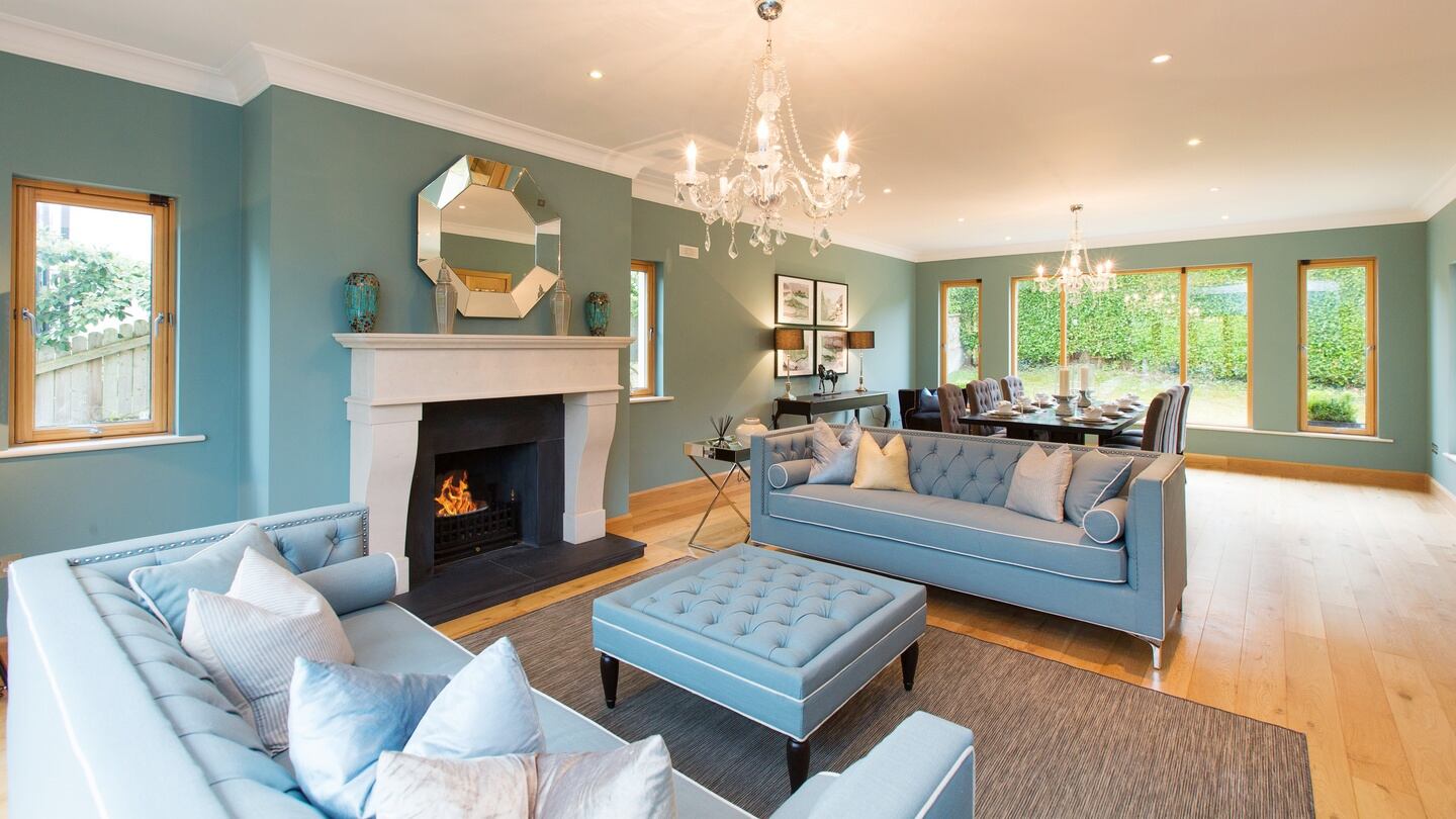 The front door of St Brendan’s opens into a wide, very bright double-height hall. It is flanked by two very long open-plan rooms: on the left is the family room-cum-kitchen, on the right, the slightly more formal living room/dining room. All but the kitchen floors are polished timber.