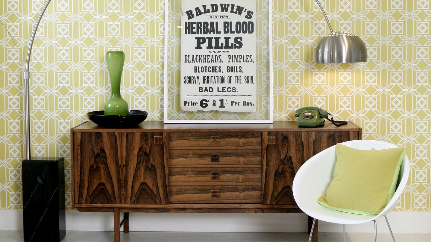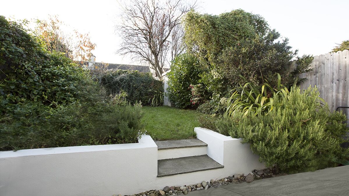 To the front of the property, a formal livingroom with original fireplace peeks out on to the quiet cul-de-sac through sliding sash windows. Old pine flooring has been painted an off-white hue giving a modern feel, that is echoed in the pale grey bookshelves which flank the hearth.