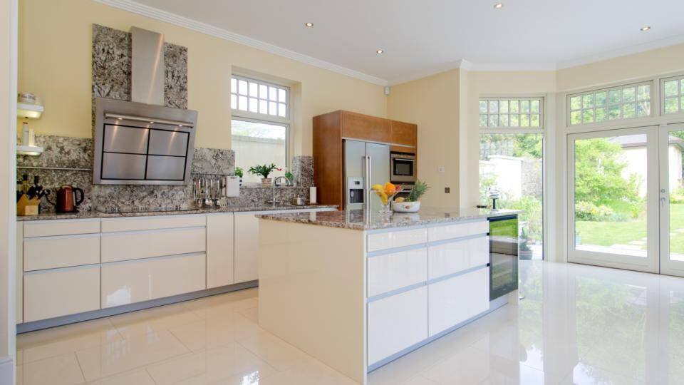 Downstairsthe accommodation includes a study, sitting room and more formal dining room, and a large kitchen with space for sitting, that opens up to the garden and patio. There are cupboards everywhere so, as the owner says, you get to “feel as if you’re tidy and organised”, which is handy as the house is finished with that high-shine polished stone and wood look that doesn’t welcome the general dishevelled chaos that many of us don’t manage to rise above – whatever our intentions.