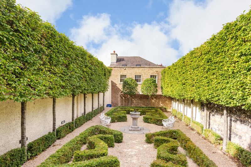Laid out to an Italianate style, with structured box hedging set in low-maintenance gravel pathways, the use of Hornbeam – which is espaliered – gives much architectural ornamentation to this beautiful secluded space located just five minutes’ stroll from St Stephen’s Green.