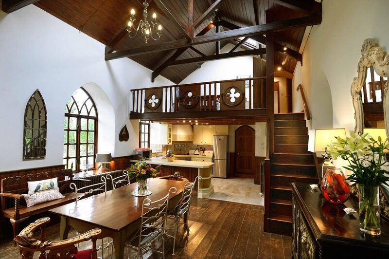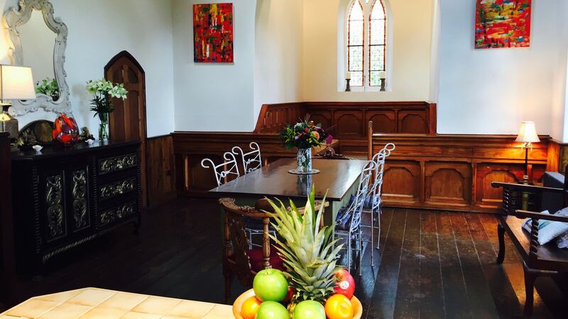 Despite being a church in a former life, the lack of a spire and simple interiors means it does not retain that overly ecclesiastical feel which some conversions find hard to shake. A remarkable stained glass window with a Star of David and climbing passiflora serves as a small reminder of its provenance, as do the oak beams and choir gallery – which is now a guest bedroom.