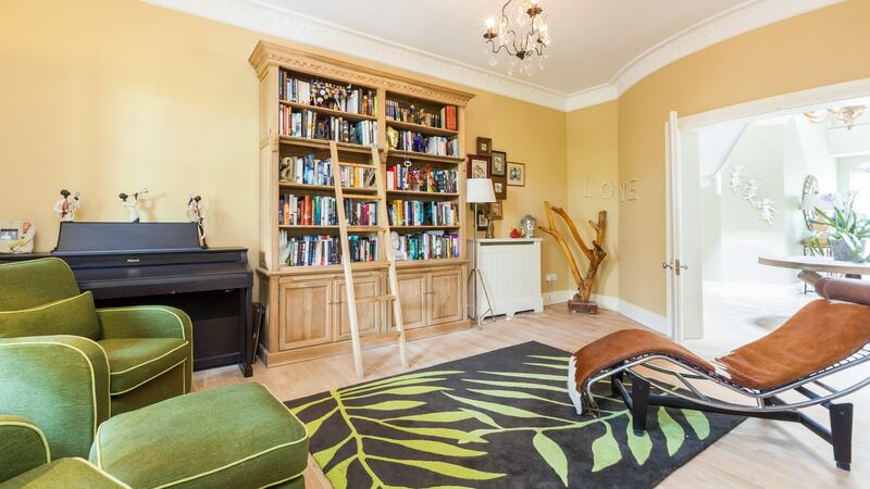 At the top of the stairs lies a cosy living space, flanked on either side by two rooms measuring 74sq m (797sq ft) each. One is used as an office and music room and the other as an additional bedroom, storage area and further living space.