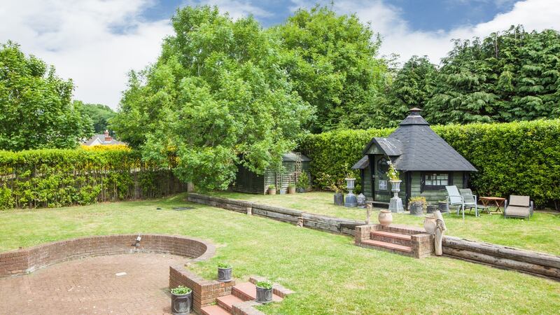 Located on a corner site, though not overly large given the size of the house, the rear garden is laid out with a tiered lawn and three sheds, one of which was a sauna room for O’Riordan and Burton. The wraparound garden, which is completely private, would benefit from further planting and the use of weed killer in places.