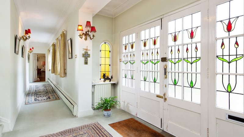 Although dated, Mulcaire has been well maintained. Double front doors with large stained-glass panels open into a long narrow hall on the right. The drawing room at the end runs from the front to the back of the house, has a dark pine timber floor and a small door at the side of a box bay window opening onto the back garden. There’s a study next to it off the hall and then a dining room with another box bay window and door opening into the garden.