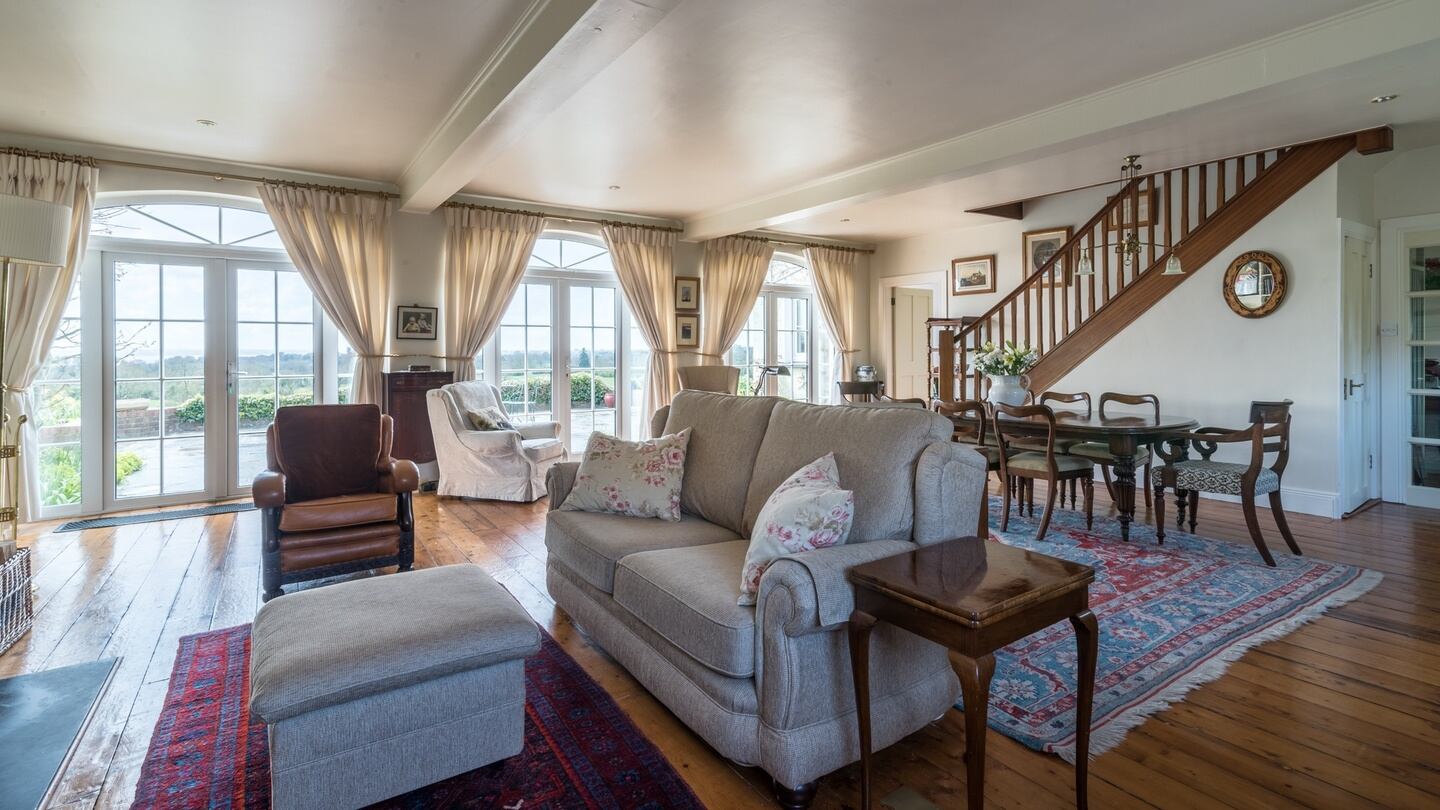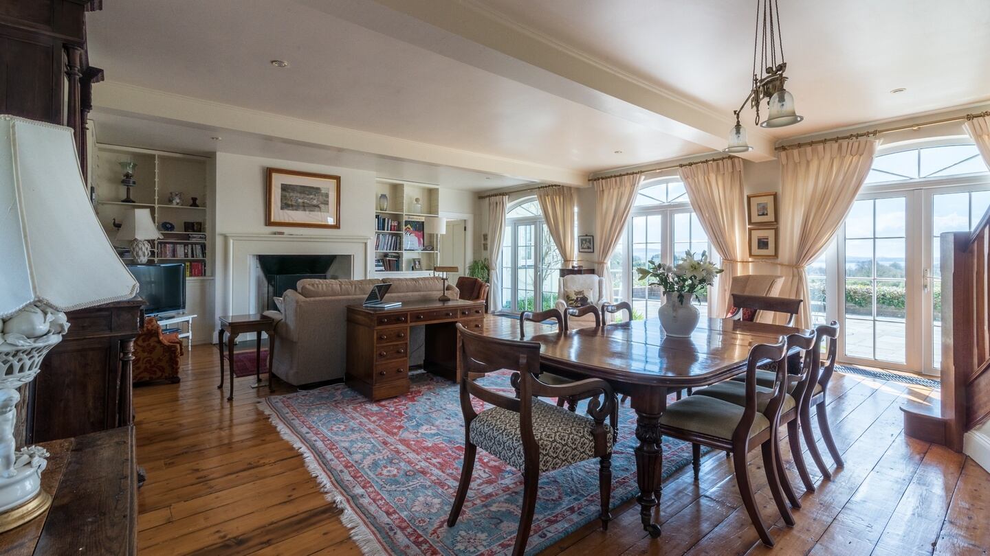 The house was built by a Dutch couple in 1993 and has the curved rooflines typical of that country’s architecture. With a relatively straightforward facade, the real drama happens round the back, as the 325sq m (3,498sq ft) building wraps around a sun terrace, accessed from a series of large French windows.