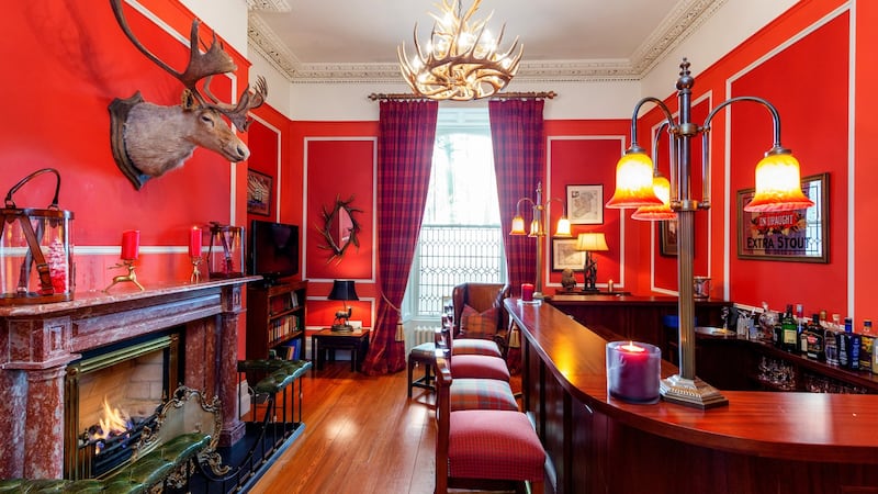 Home bars became the “must have” feature in the Celtic Tiger era for lavish homes, but many of them appeared to be rather vulgar displays of wealth that never sat well with the overall design. At Hatherton it fits: the deep crimson walls with an open fire overlooked by a giant stag’s head is more reminiscent of a cosy residents’ snug at a country manor, which is essentially what Hatherton was designed to be.